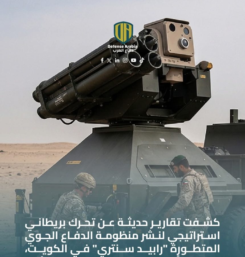بعد نشر سفينة دفاع جوي في المتوسط لحماية قاعدتها في جمهورية قبرص..كشفت تقارير حديثة عن تحرك بريطاني استراتيجي لنشر منظومة الدفاع الجوي المتطورة “رابيد سنتري” في الكويت، وذلك رداً على هجوم ليلي غادر بطائرة مُسيّرة استهدف منشأة نفطية.