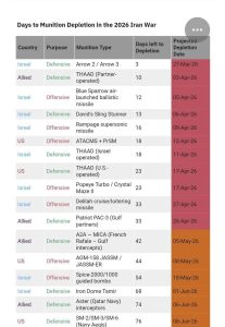 أحد الأسباب الرئيسة التي دفعت إسرائيل للموافقة على وقف إطلاق النار مع إيران هو نفاد مخزونها من الذخائر الاعتراضية بالكامل تقريبًا، وتحديدًا صواريخ “حيتس” (Arrow) المخصصة لاعتراض الصواريخ الباليستية الإيرانية؛ مما اضطر إسرائيل للاعتماد بشكل شبه كلي على صواريخ (SM-3) الموجودة على متن المدمرات الأمريكية من طراز (Arleigh Burke)، بالإضافة إلى منظومات “ثاد” (THAAD). وقد ارتفعت نسبة نجاح الصواريخ الإيرانية في اختراق الدفاعات الإسرائيلية من 3% في بداية المواجهة إلى 27% قبيل وقف إطلاق النار.