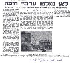في ذكرى احتلال حيفا ( 21- 22 ابريل 1948 ) فإن المؤرخ الاسرائيلي ، دكتور أوري ميلشتاين ، يقول :